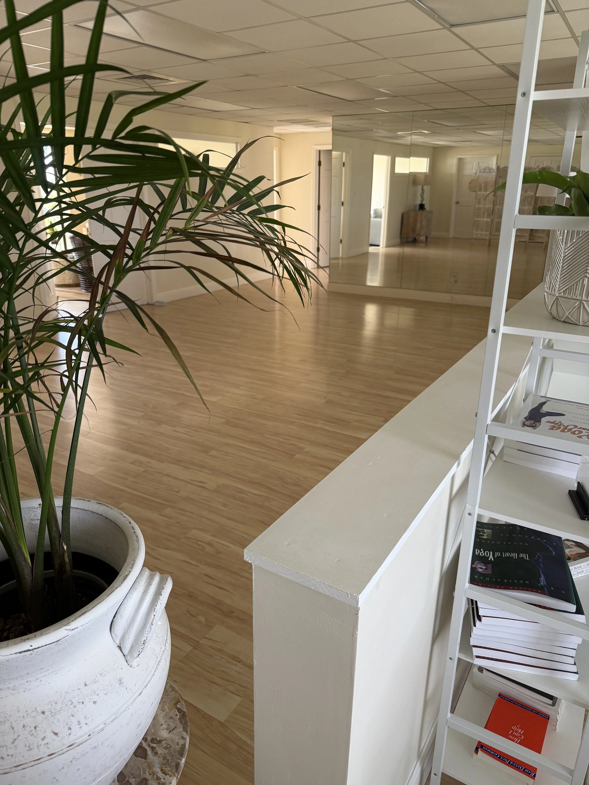 • A supportive atmosphere that accommodates 12 yoga mats or 16 chairs for various movement practices, meditation/sound healing groups.